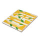 Diese lebendige, nahtlose Keramik-Kachel mit stilisierten orangen Scheiben und frischen grünen Blätter Set gegen fett abwechselnd weiße und gelbe horizontale Streifen. Die orangefarbenen und gelben Punkte sorgen für eine lustige, spielerische Touch, die das Design sonnig, fröhlich und voller Frische macht. Ideal für Sommerthemen, tropische Vegetation und fruchtige, energetische Ästhetik.