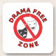 Ein Transitzeichen mit den Worten: Drama-freie Zone. Text mit Bildern der griechischen Masken der Komödie und Tragödie. Störungseffekt beim Design.