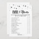 Kaufen Sie dieses personalisierte Spiel und genießen Sie eine hochwertige Ever oder Niemals Karte für Ihre Veranstaltung! Dies ist eine Spielvorlage, Sie können die Fragen, wie Sie möchten ändern! Schwarzweiß-Design.
