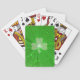 Ein moderner Entwurf, der ein Kleeblatt auf einem "glänzenden" grünen Hintergrund kennzeichnet. Spielkarten mit einem kundengerechten Entwurf, damit Sie mit Ihrem eigenen Text, Bildern und Ideen personifizieren. Andere Artwahlen verfügbar. Das Bild, das unter Verwendung der ursprünglichen Fotografien und der digitalen Techniken geschaffen wird, glänzt nicht oder enthält Glitzern.