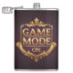 Das Design enthält den Begriff "Game Mode On" in einem stilisierten, großformatigen, goldenen Schriftart. Die Worte sind Set gegen eine reiche, samtrote Kulisse, mit subtilen goldenen Highlights für einen Hauch von Opulenz und Grandeur.