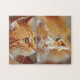 Dieses Spielpuzzle wird mit einem Foto von einer Katze gezeigt, die den Goldfisch betrachtet.