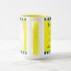 Personalisieren Sie diese nautische Tasse für Anzug, für Zuhause, Hütte, Anhänger oder Restaurant. Das Hintergrundmuster ist abnehmbar und kann auf eine beliebige Farbe umgeschaltet werden. Der hellgelbe Mittelstreifen kann in jede Farbe gewechselt werden, ebenso wie die marineblauen Streifen. Text auf der links Seite des Designs kann für jeden Anlass auf jede Nachricht umgeschaltet werden, mit mehreren Tasse zur Auswahl und Cup-Größe. Eine lustige und kreative Art, eine Nachricht zu senden, ideal für den Ruhestand, oder jemanden eine schnelle Erholung zu wünschen, oder Urlaubswünsche.