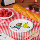 Fügen Sie Ihrem Party einen Spaß hinzu, mit diesen Tellern aus Papier, die einem Cartoon mit einer hellgelben Banane zeigen. Die kühnen Farben und das skurrile Design geben Geburtstagen, Schulveranstaltungen oder lässigen Ansammlungen eine fröhliche Atmosphäre. Diese Teller sind solide und praktisch und machen das Essen einfach und schaffen gleichzeitig eine spielerische Atmosphäre.