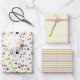 3 Geschenkfolien - Spielzeuge der 80er Jahre, gelbe Sterne, primäre Streifen. Großartiges Set zum Geburtstag.