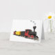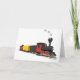 Grußkarte mit einem Spielzeugzug, der auf der Front, reisend auf die Rückseite ankommt ab. Vervollkommnen Sie für den Geburtstag eines Kindes.