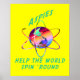 "Aspies helfen der Welt, sich in blau-grünem Comic mit einem sich um den Kopf drehenden Globus zu drehen.