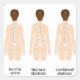 Wirbelsäulenverformungstypen und ein gesundes Wirbelsäulenvergleichsdiagramm mit Wirbelsäulenkrümmern. weibliche Datei und Rückansicht. Chiropraktische Informationen