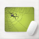 Surfen Sie das Netz? Dieses Netz ist eins, das Sie für heraus aufpassen wollten. Eine gruselige Spinne sitzt in ihrem Netz gegen einen hellgrünen Hintergrund.