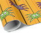 Niedliche lila und grüne Spinnen auf einem hellen orangefarbenen Verpackungspapier-Design wäre perfekt für ein Halloween-Party oder Geschenk. Wählen Sie aus verschiedenen Längen und Stilen.