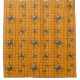 Ein heller orangefarbener Hintergrund schafft eine perfekt Halloween-Thematik-Basis für ein sich wiederholendes Muster schwarzen Webcrawlings mit Spinnen. Diese Spinnen, die nach der falschen Witwe modelliert wurden, weisen einen hellen weißen Schädel auf ihren Bauch und andere weiße Markierungen auf ihrem Körper und ihren Beinen auf.