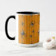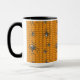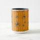 Ein heller orangefarbener Hintergrund schafft eine perfekt Halloween-Thematik-Basis für ein sich wiederholendes Muster schwarzen Webcrawlings mit Spinnen. Diese Spinnen, die nach der falschen Witwe modelliert wurden, weisen einen hellen weißen Schädel auf ihren Bauch und andere weiße Markierungen auf ihrem Körper und ihren Beinen auf. Diese Tasse ist in verschiedenen Farben, Größen und Stilen erhältlich, einschließlich Reisebügeln und Steinen.