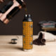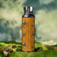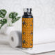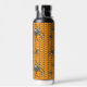 Ein heller orangefarbener Hintergrund schafft eine perfekt Halloween-Thematik-Basis für ein sich wiederholendes Muster schwarzen Webcrawlings mit Spinnen. Diese Spinnen, die nach der falschen Witwe modelliert wurden, weisen einen hellen weißen Schädel auf ihren Bauch und andere weiße Markierungen auf ihrem Körper und ihren Beinen auf.