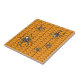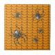 Ein heller orangefarbener Hintergrund schafft eine perfekt Halloween-Thematik-Basis für ein sich wiederholendes Muster schwarzen Webcrawlings mit Spinnen. Diese Spinnen, die nach der falschen Witwe modelliert wurden, weisen einen hellen weißen Schädel auf ihren Bauch und andere weiße Markierungen auf ihrem Körper und ihren Beinen auf. Diese Kachel kann gerahmt werden, um ein Trivet zu erstellen oder in einem Holzdeckel Geschenkboxen platziert werden. Auch Fliesen ohne Rahmen passen in die große Geschenkboxen, um ein passendes Set zu erstellen.