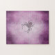 Eine schwarze Witwenspinne in einem weißen Netz aus Punkten auf einem lila Hintergrund.