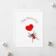 Rote Spinne mit Herz auf weißer Hintergrundkarte für Valentinstag