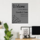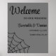 Herzlich willkommen zu Ihrer Hochzeit im Stil dieses Posters, das sich perfekt für gotische Hochzeiten mit seiner Spinnennetz-Grafik eignet. Schwarzer Text ist Set vor einem grauen Hintergrund aus Stahl.
