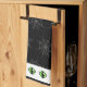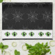 Dieses skurrile Design ist perfekt für die Halloween-Küche. Es hat ein Muster von grauen Spinnennetzen über einem schwarzen Hintergrund. Oben und unten dieses Handtuch haben ein weißes Band mit grünen Augen.