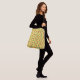 Ladys große Crossbody Beutel in einem Muster von Kreisen, jeder Kreis besteht aus abwechselnden roten und grünen Punkten, auf einer gelben Basis Farbe.