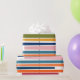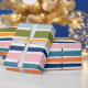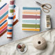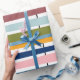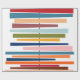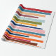 Dieses Verpackungspapier hat ein modernes Design von horizontalen farbigen Linien auf einer vertikalen schwarzen Linie mit Kreisen.