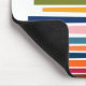 Dieses Mauspad hat ein modernes Design von horizontalen, farbigen Linien auf einer vertikalen schwarzen Linie mit Kreisen.