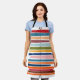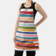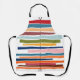 Diese Schürze hat ein modernes Design von horizontalen Linien auf einer senkrechten schwarzen Linie mit Kreisen.