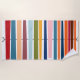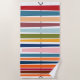 Dieses Strandtuch hat ein modernes Design von horizontalen Linien auf einer vertikalen schwarzen Linie mit Kreisen.