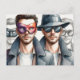 Das Bild zeigt zwei männliche Figuren, die in ähnlicher Weise mit Grabenmänteln und Hüten gekleidet sind. Die Kunstwerke werden in einem realistischen Stil mit detaillierter Schattierung und Farbgebung ausgeführt, besonders in den Haar- und Bekleidungstexturen. Der Hintergrund ist neutral und konzentriert sich auf die beiden Zahlen. Die Szene suggeriert einen Moment der Interaktion oder Konversation zwischen den beiden Individuen.