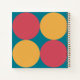 Ein spiralgebundenes Notebook mit modernen Kreisen der Mitte des Jahrhunderts, das auf dem Cover entworfen wurde. Die Kreise sind rot und gelb auf einem blauen Hintergrund. Personalisieren Sie das schicke Notebook mit dem Namen des Empfängers für die fertige Touch.