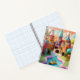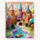 Dreh durch ein spiralgebundenes Foto Buch, das einen in ein skurriles Storybuchland eintaucht. Die Seiten zeigen eine fröhliche Landschaft voller bunter, farbenfroher Gebäude, die in lebendigen Farben gemalt werden und eine lebendige Atmosphäre schaffen.