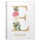 Modernes stilvolles Elegantes und skurriles E Monogramm Notizbuch. Die Blume sind in Aquarellfarben, Rosa und Grün gehalten, mit der Typografie von Imitaten aus Goldfolie. Dieses hübsche, blumengeschmückte Monogramm-Notizbuch ist ein Geschenk.