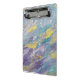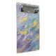 Quiet Reign is an abstract piece defined by its soothing, cool color palette and energetic brushwork. The painting features diagonal sweeps of soft lavender, tranquil aqua, and deep violet, punctuated by bold, shimmering metallic gold accents. The overall effect is one of serene motion, like a gentle rain shower illuminated by a hidden golden light. This artwork adds a touch of modern, peaceful sophistication to any space or product.