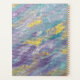 Quiet Reign is an abstract piece defined by its soothing, cool color palette and energetic brushwork. The painting features diagonal sweeps of soft lavender, tranquil aqua, and deep violet, punctuated by bold, shimmering metallic gold accents. The overall effect is one of serene motion, like a gentle rain shower illuminated by a hidden golden light. This artwork adds a touch of modern, peaceful sophistication to any space or product.