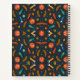 Spiral notebook with a Halloween-themed cover. The front and back feature colorful patterns of pumpkins, ghosts, bats, and foliage on a dark background. The mood is festive and playful.