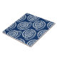 Keramik-Kachel in einem Blockdruckmuster auf der Grundlage einer Spiralsohle, weiß auf einem kobaltblauen Hintergrund