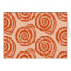 Notizkarte in einem Blockdruckmuster, basierend auf einer Spiralsohle, in tiefkorallorange auf einem pastellfarbenen, orangen/apricoten Hintergrund
