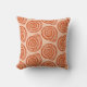 Kopfkissen in einem Blockdruckmuster, auf der Grundlage einer Spiralschleife, in tiefkorallorange auf einem pastellfarbenen, orangefarbenen/apricoten Hintergrund