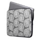 Laptop-Ärmel in Blockdruckmuster, auf der Grundlage einer Spiralsocke, in Weiß auf einem tiefgrau/grauen Hintergrund
