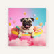 Das Cover zeigt einen fröhlichen Mops im Donut-Schwimmreifen auf flauschigen Zuckerwattewolken – umgeben von Lollis und einem himmlischen Farbverlauf in Pink und Türkis.