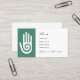 Das Symbol Spiral Hand repräsentiert heilende Hände, Heiler, Frieden, Meditation und spirituelle Energie. Das Bild zeigt eine menschliche Hand mit einer Spirale, die von der Palme auf einem grünen Hintergrund für Massagetherapeuten oder jede Heilmethode ausstrahlt.