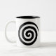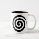 Spiralkreise des Herzens und des Wirbels in Schwar Zweifarbige Tasse