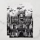 Ein altes Spuk Herrenhaus mit überladenen Fledermäusen. Fügen Sie Ihren eigenen Text zur Personalisierung hinzu.
