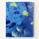 Blauer Fisch sieht wie Quallen auf mysteriöse Weise gelb in dieser magischen, abstrakten Unterwasserwelt. Ein wunderschönes Notizbuch für alle, die die Farbe Blau Liebe!