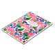 Ein sehr hübsches Notizbuch mit einem Allovermuster aus rosa, blauen und tiefroten Primulas, von einem handbemalten Design von Judy Adamson. Es gibt einen ovalen Platz für Sie, um Ihren Namen oder den Titel des nobtebook in rosa Schrift hinzuzufügen.