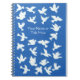 Ein hübsches Spiral-Notebook zum Personalisieren, mit weißen Tauben auf einem hellblauen Hintergrund, von einem handgemalten Papier Collage Design von Judy Adamson.