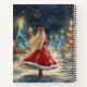 Alice in Winterwunderland inspirierte Notizbuch, Mädchen schlendern einen fantastisch beleuchteten Winterwanderweg hinunter mit Weihnachtsbäumen und Sternenhimmel. Die Phrase Umgeben Sie sich mit Menschen, die Ihr Herz lächeln ist auf dem Cover. Sie können auch den Namen und das Monogramm personalisieren.