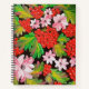 Das Notizbuch zeigt ein auffallendes Design von roten und rosa Blume, die im traditionellen Petrykivka-Stil gemalt wurden, Set vor einem schwarzen Hintergrund. Die Blumenmuster sind reich an Details, mit zarten Blätter und lebhaften Blütenblättern, die direkt von der Decke zu blühen scheinen. Der Kontrast der kühnen Farben vor dem dunklen Hintergrund verleiht dem Notebook ein elegantes und dennoch lebendiges Aussehen е.