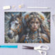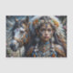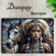 Dieses atemberaubende Porträt vereint Fantasie und einheimisch inspirierte Elemente in einer atemberaubenden Darstellung von Zierdetails und spirituellem Power. Die Komposition verbindet meisterhaft ein edles Steed mit einer verzierten Figur, die beide mit einer faszinierenden Regalie mit türkisfarbenen, goldenen und silbernen Akzenten geschmückt ist. Das Gesicht des Subjekts trägt zarte blaue zeremonielle Muster, die die dekorativen Elemente ihres aufwändigen Kostüms widerspiegeln, während ihr Kopfteil Sonnenblumen, weiße Blüten und Federn in einer königlichen Krone kombiniert. Die raffinierte Farbpalette des Stückes verbindet tieftürkisfarbene Blues, reiche Golden und ätherische Weiße mit dunkleren atmosphärischen Farbtönen und schafft so eine Aura mystischer Gleichheit, die jede Oberfläche in einen zauberhaften Brennpunkt verwandelt. Perfekte Farbpaarungen: Türkis + Aged Gold Deep Navy + Ivory White Bronze + Royal Blue Pearl + Midnight Black Amber + Steel Blue Captivating Design Elements: Intricate zeremonielle Schmuckstücke Feather und Blumenbezug Details Verzierte Pferdebridle Arbeit Gesichtskunstmuster Abmessungen Textilien Ideale Möbel Wandwandeln: Bohemisch Schmuckarmotive Dekorraum Bildschirm Große Brust oder Rumpf Meditation Saal Tisch Boho Vanity Schrank Dieses Design zeichnet sich in Räumen, die spirituelle und böhmische Elemente einschließen. Seine reiche Symbolik und die detailreiche Dekoration machen ihn besonders für Möbelstücke in Meditationsräumen, Umkleidekabinen oder künstlerischen Retreats geeignet. Wenn sie auf Möbel angewendet wird, schafft sie ein unmittelbares Gefühl von heiligem Raum und mystischer Eleganz, indem sie gewöhnliche Stücke in mächtige künstlerische Aussagen verwandelt, die die indigene und inspirierte Ästhetik ehren und gleichzeitig einen zeitgenössischen Reiz bewahren.
