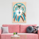 Grafik eines Wolfs in einem Traumfänger mit Federn in Bräunen, Blau, Braun, Weiß und anpassbarer Hintergrundfarbe!
