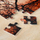 Wolfwand überlagert auf einem Sonnenuntergang mit bloßen Bäumen silhouettiert zu einem Totem oder Geist Wolf Bild Puzzle aus Wolf